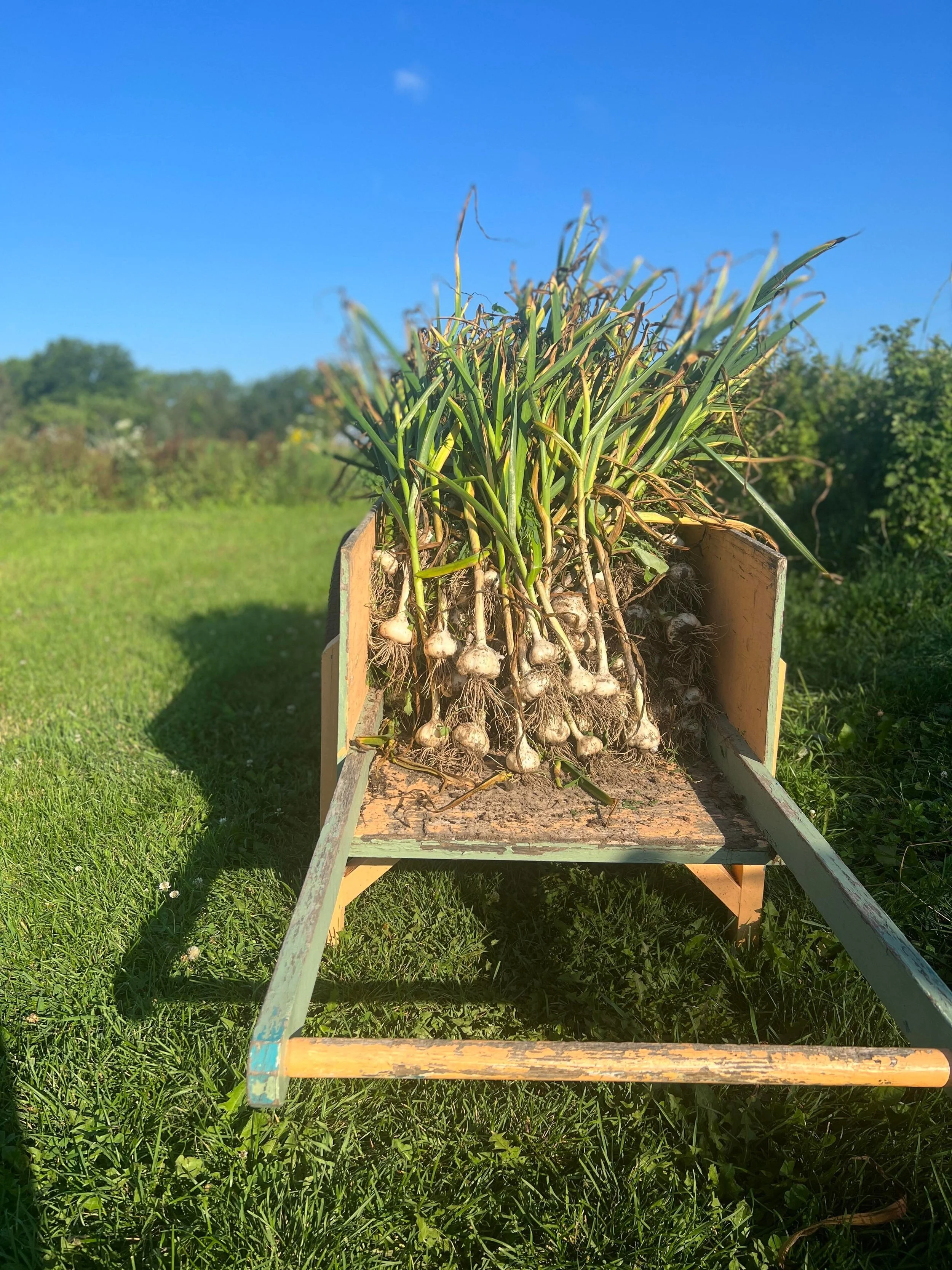 Fresh garlic until cured garlic is available in late July